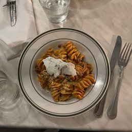 Wow! Blown away. Every single thing we ordered was a straight HIT. We got: Caesar salad, caico e Pepe rice balls, chicken Milanese, crab rigatoni and tiramisu + spumoni ice cream. I didn't try the oricchette but my friend loved it. The service was fast and super accommodating. The general manager was a sweetheart and really felt at home. Ambiance was super cute and cozy but the outdoor patio is where we were sat- totally takes you out of NYC. I can't say enough good things about the restaurant. I'd come back in a heart beat and can easily say this is one of my top favorite restaurants that I've tried in BK. Next time I must try the fussili grosso! My favorites on the table were the rice balls, crab rigatoni and salad must orders!